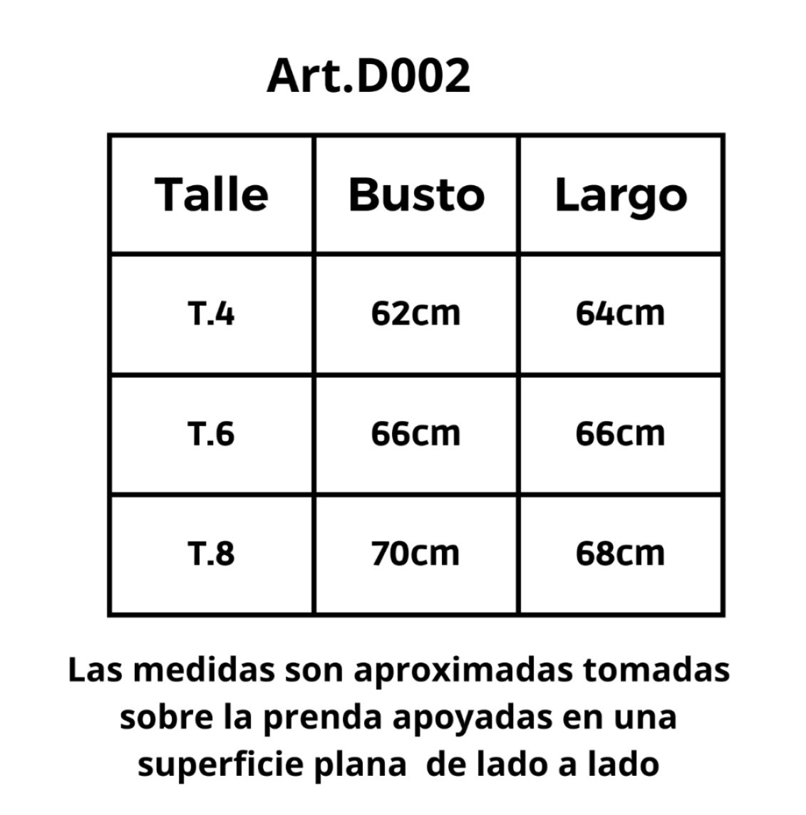| Talle | 4, 6, 8 |