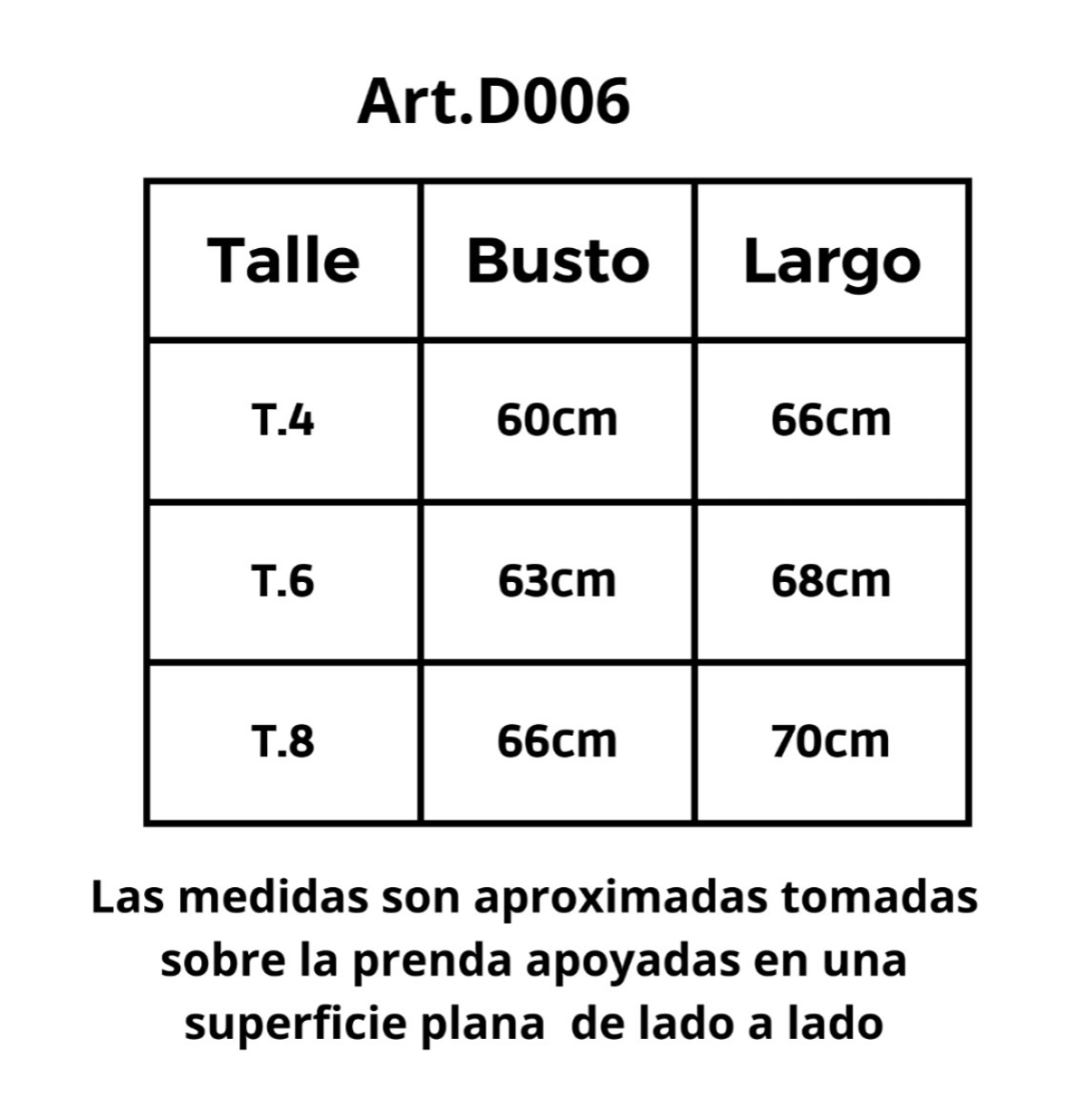 | Talle | 4, 6, 8 |