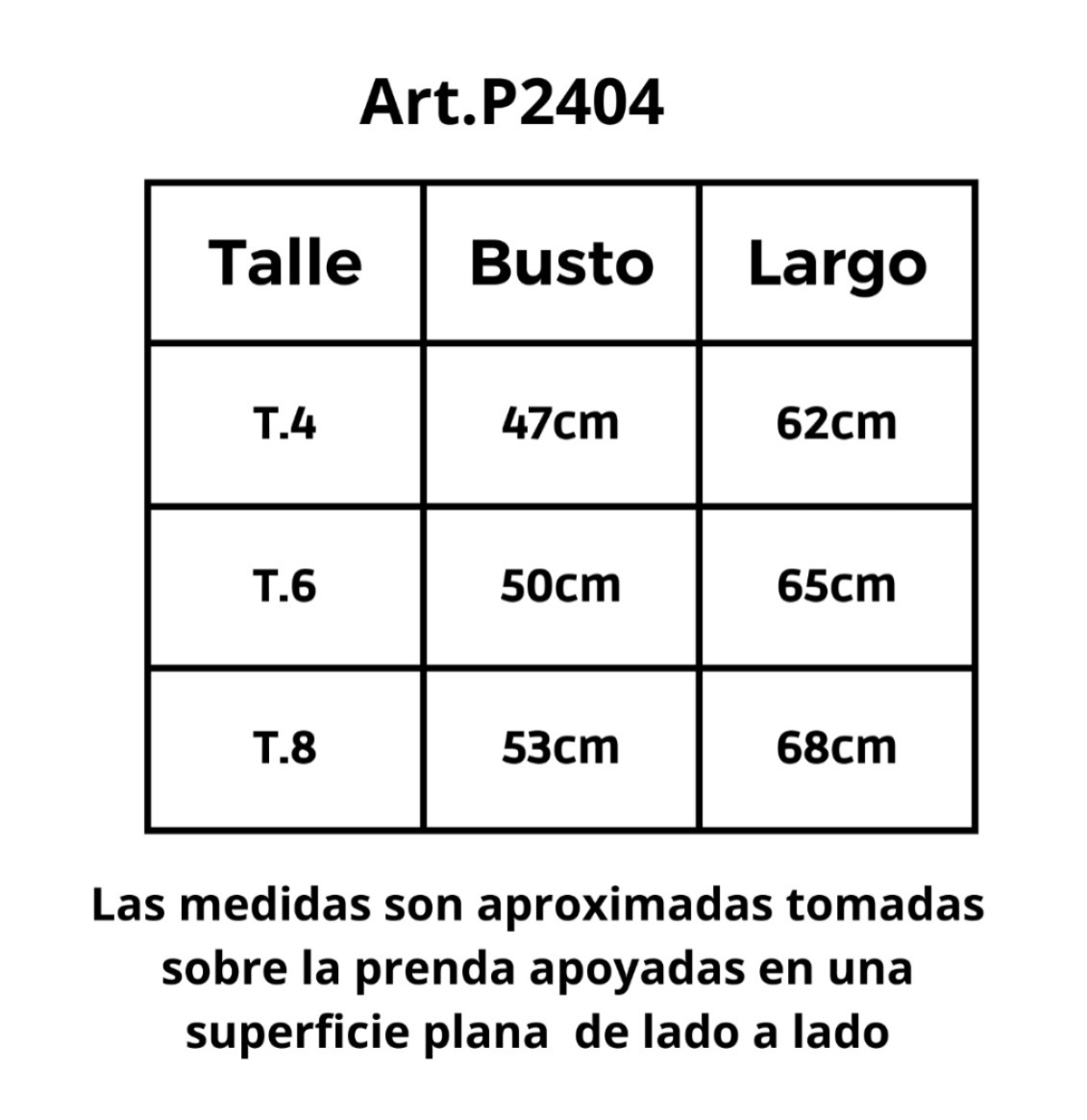 | Talle | 4, 6, 8 |