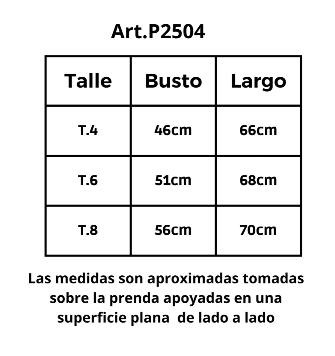 | Talle | 4, 6, 8 |